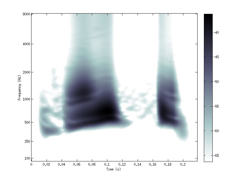 This script displays three auditory spectrograms generated using the lopezpoveda2001. The input signal is the same, just presented at three different levels. The purpose is to visualize the broading of the auditory filters at higher input levels.