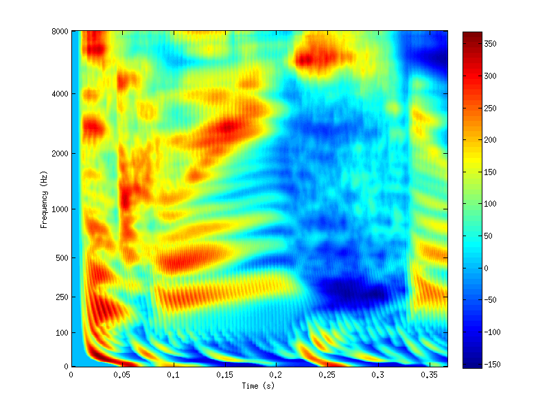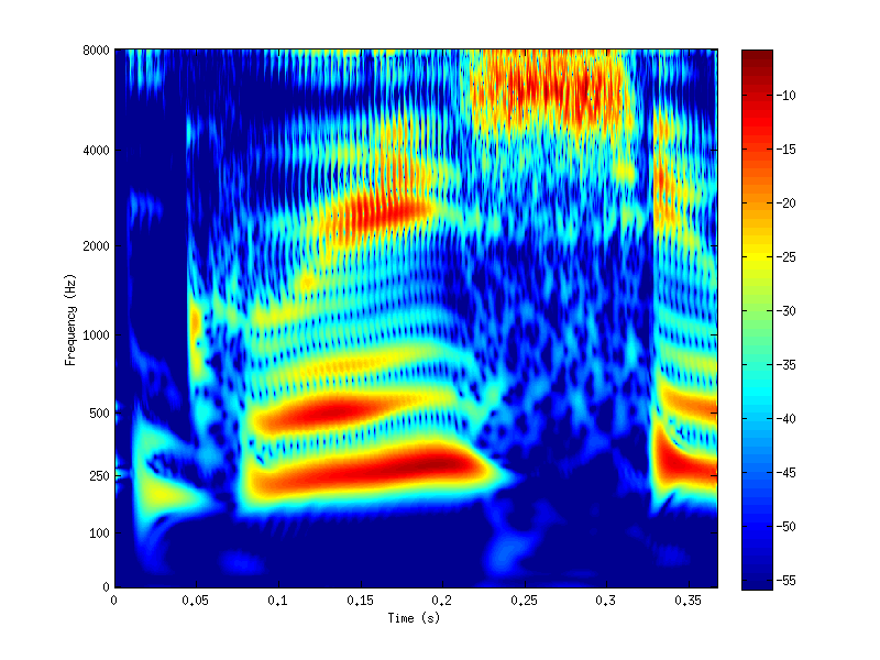 The following figure shows a classic spectrogram on an Erb scale of a spoken word: