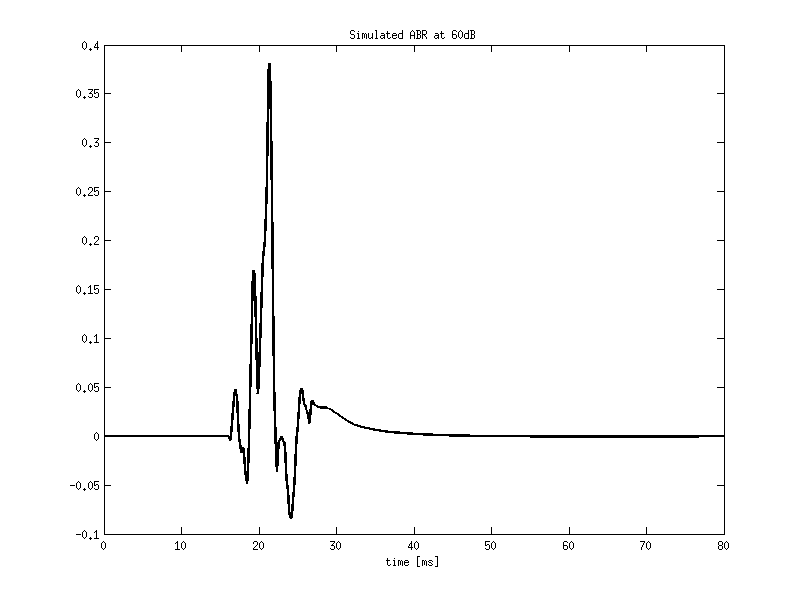 Simulates a click evoked ABR (c0 of the loaded file is a click). Note that the click loaded in this example starts after 15ms. The simulated wave V latency is thus also 15 ms "late"