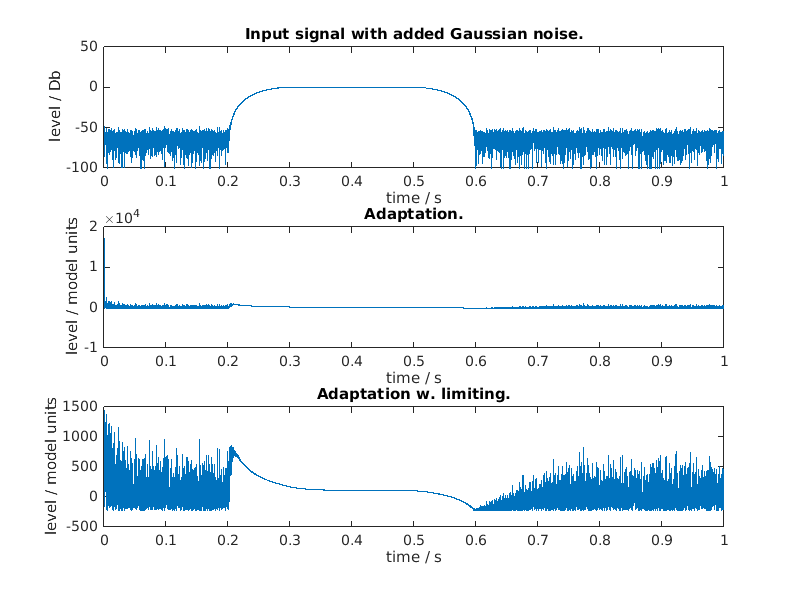 This script demonstrates the effect of adaptation applied to a test signal with and without noise.
