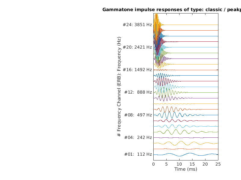 Gammatone IRs obtained with the gammatone implementation with the option classic (Patterson et al., 1987).