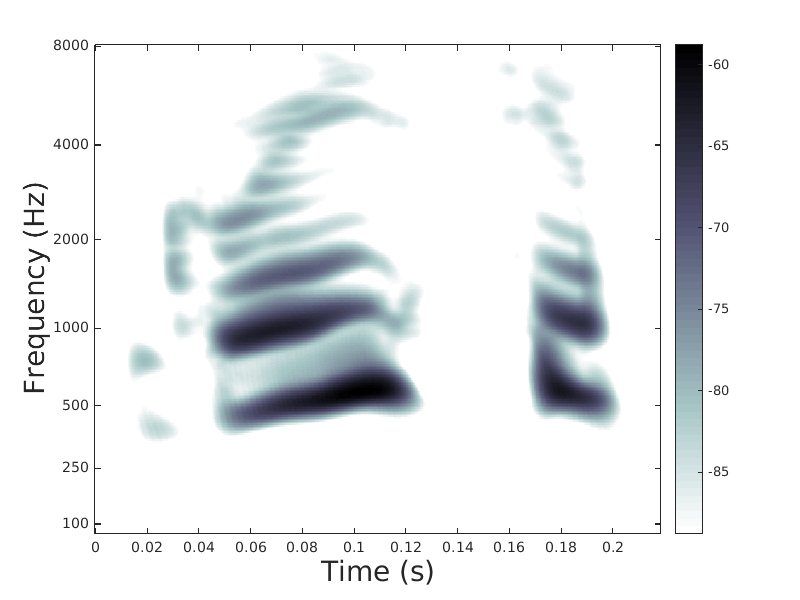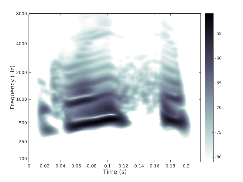 This script displays three auditory spectrograms generated using the lopezpoveda2001. The input signal is the same, just presented at three different levels. The purpose is to visualize the broading of the auditory filters at higher input levels.