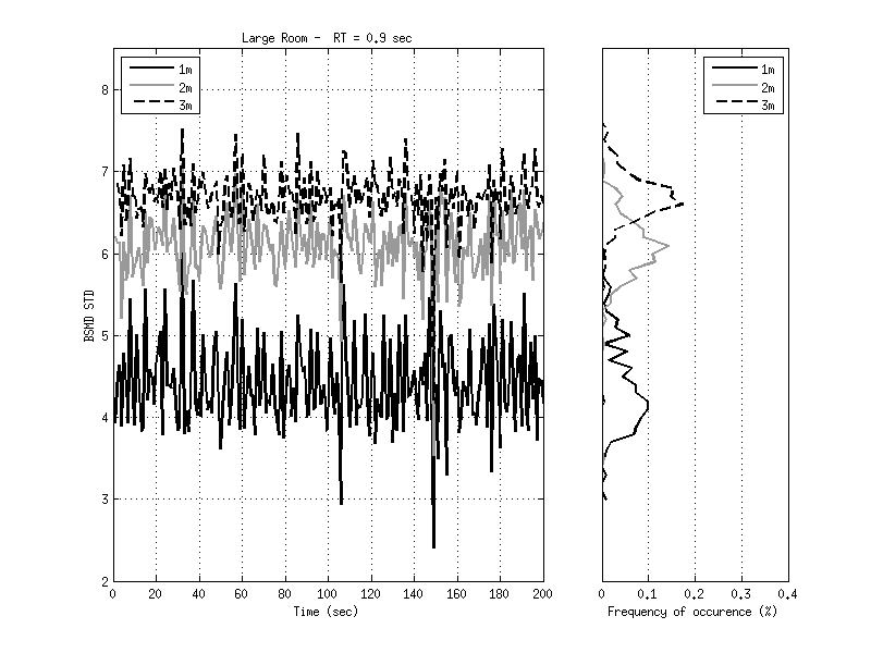 The BSMD-STD is related to the standard deviation of the magnitude spectrum of room impulse response, which is known to depend on the source/receiver distance. See Georganti et al. (2013) for more information on applications.