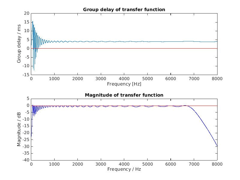 | 'fig7' | Reproduce Fig.7: Magnitude and group delay of the transfer function of the analysis-synthesis system using the filterbank design from section 3.1. |