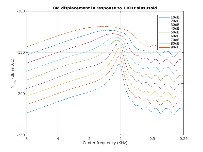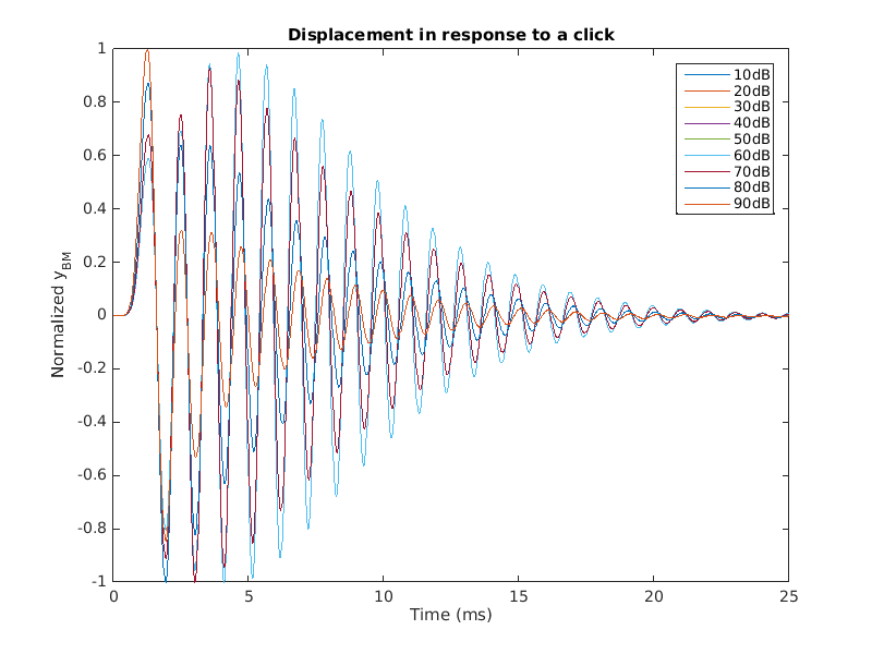This script reproduces figures 2a and 2c from Verhulst et al. "Nonlinear time-domain cochlear model for transient stimulation and human otoacoustic emission." The Journal of the Acoustical Society of America 132.6 (2012): 3842-3848.