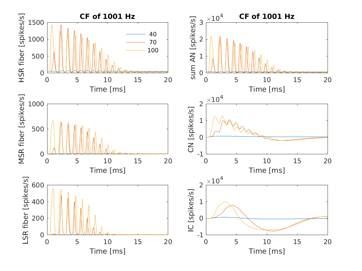 - Fig. 4: Simulated unit responses to HSR, MSR, LSR neurons, auditory