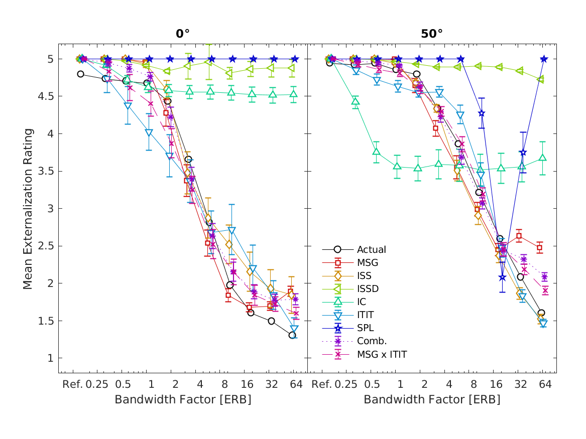 - Effect of HRTF spectral contrast manipulations on sound externalization. Externalization scores were derived from paired comparisons via Bradley-Terry-Luce modeling.