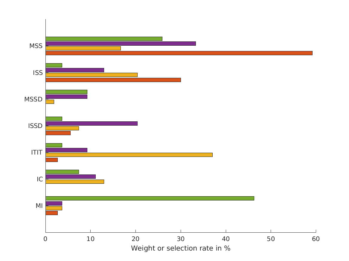 MSS, ISS, MSSD, ISSD, ITIT, IC, MI 0.64838 0.012149 0 0.24297 0.020725 0.075782 0 0.031103 0.039787 0.076446 0.028399 0.14665 4.9692 5.7079 -0.023211 -2.9939 1.9311