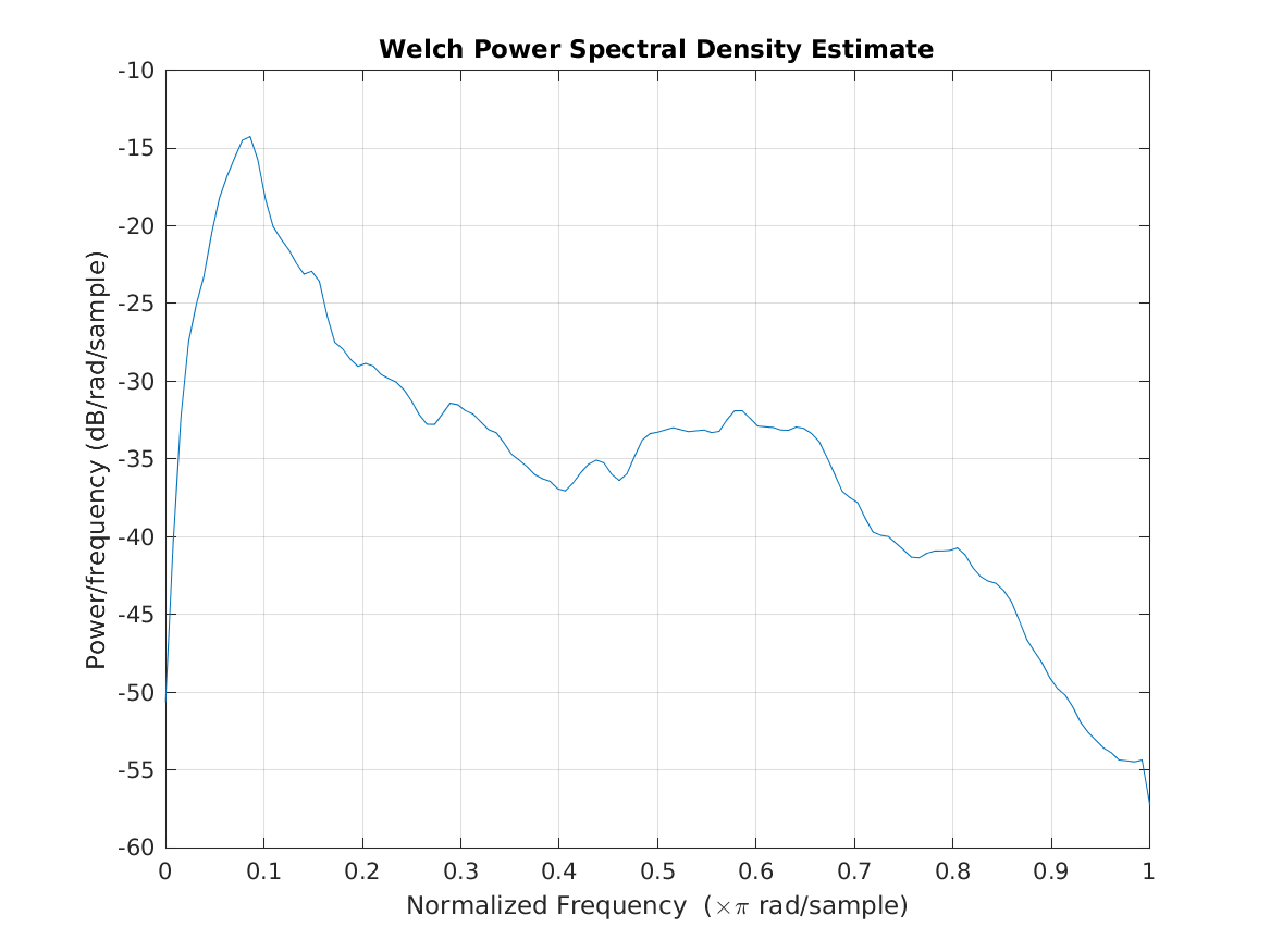 The following plot shows an estimate of the power spectral density of the first channels of the speech shaped noise:
