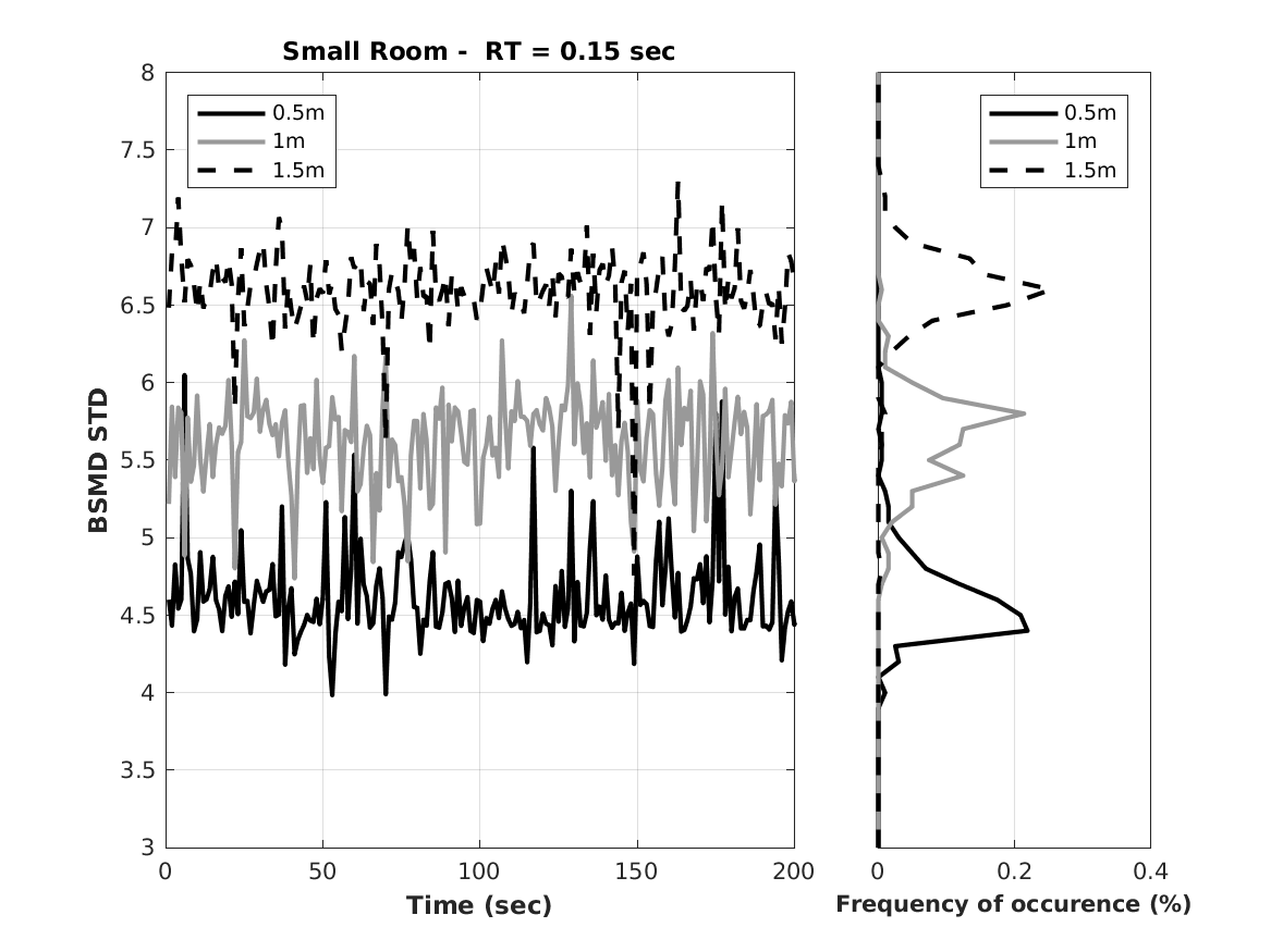 The BSMD-STD is related to the standard deviation of the magnitude spectrum of room impulse response, which is known to depend on the source/receiver distance. See Georganti et al. (2013) for more information on applications.