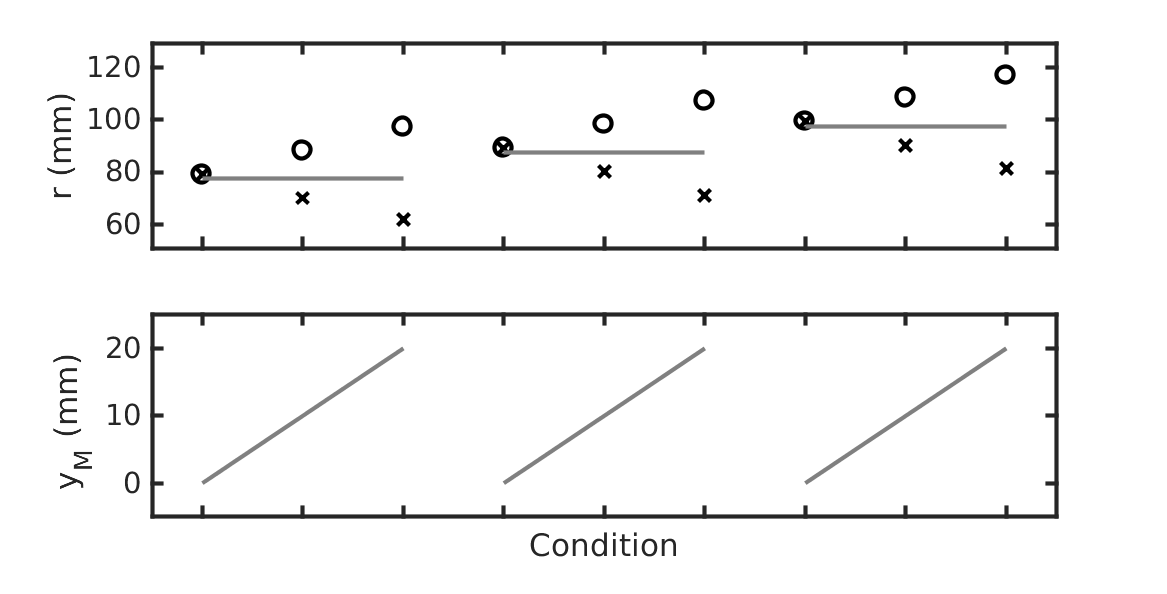 | 'fig5' | Reproduce Fig. 5: Estimated on-axis model parameters from HRTFs calculated for the centered object Sphere. Condition: combination of actual parameters used in HRTF simulation. Circle and cross: Parameters estimated for the left and right ears, respectively. Gray lines: Actual parameters. |