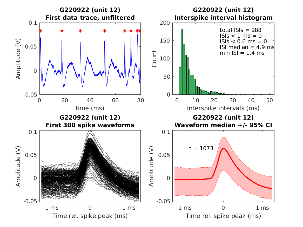| 'fig4' | Reproduce Fig. 4: Plot the waveform shapes of a single unit. Default is the animal G220922 and unit 12 (3p_607). |