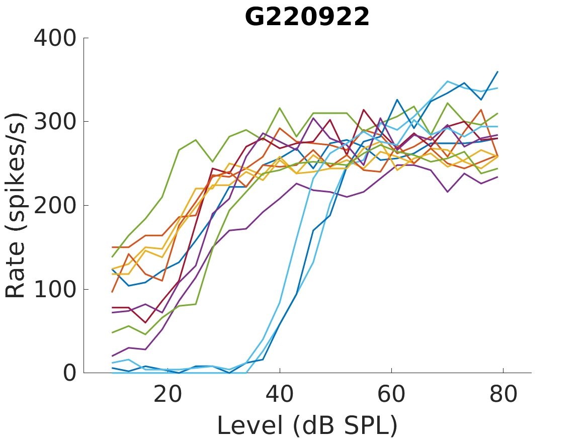 | 'fig5a' | Reproduce Fig. 5a: Plot all rate-level functions from an animal. Default is the animal G220922. |