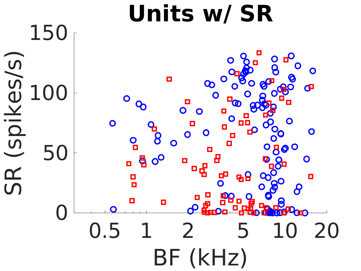 | 'fig6' | Reproduce Fig. 6: Plot BF vs threshold (Fig. 6a), BF distribution in young- adult gerbils (Fig. 6b), BF vs spontaneous rate (Fig. 6c) and BF vs vector strength to pure tones at BF (Fig. 6d) based on the full dataset. |