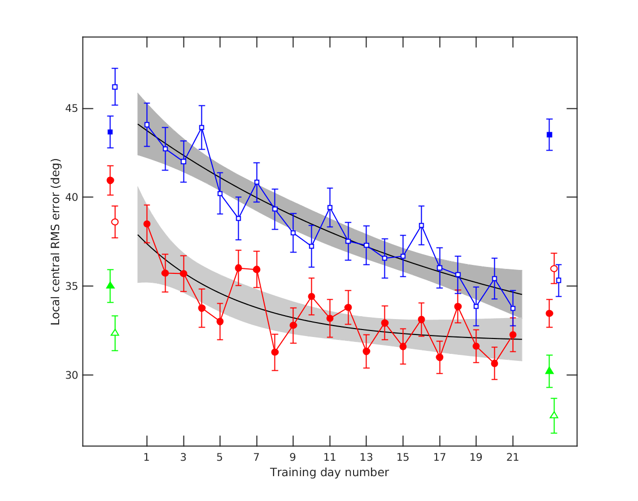 P. Majdak, T. Walder, and B. Laback. Effect of long-term training on sound localization performance with spectrally warped and band-limited head-related transfer functions. The Journal of the Acoustical Society of America, 134:2148--2159, 2013.
